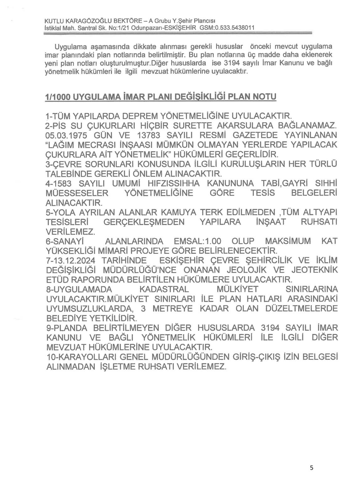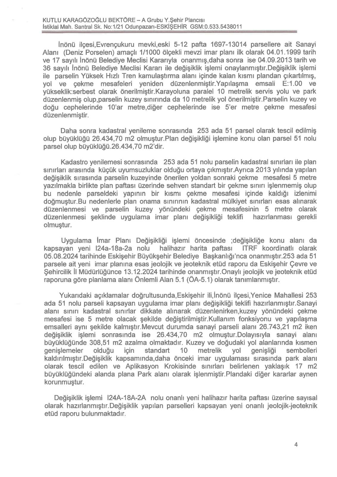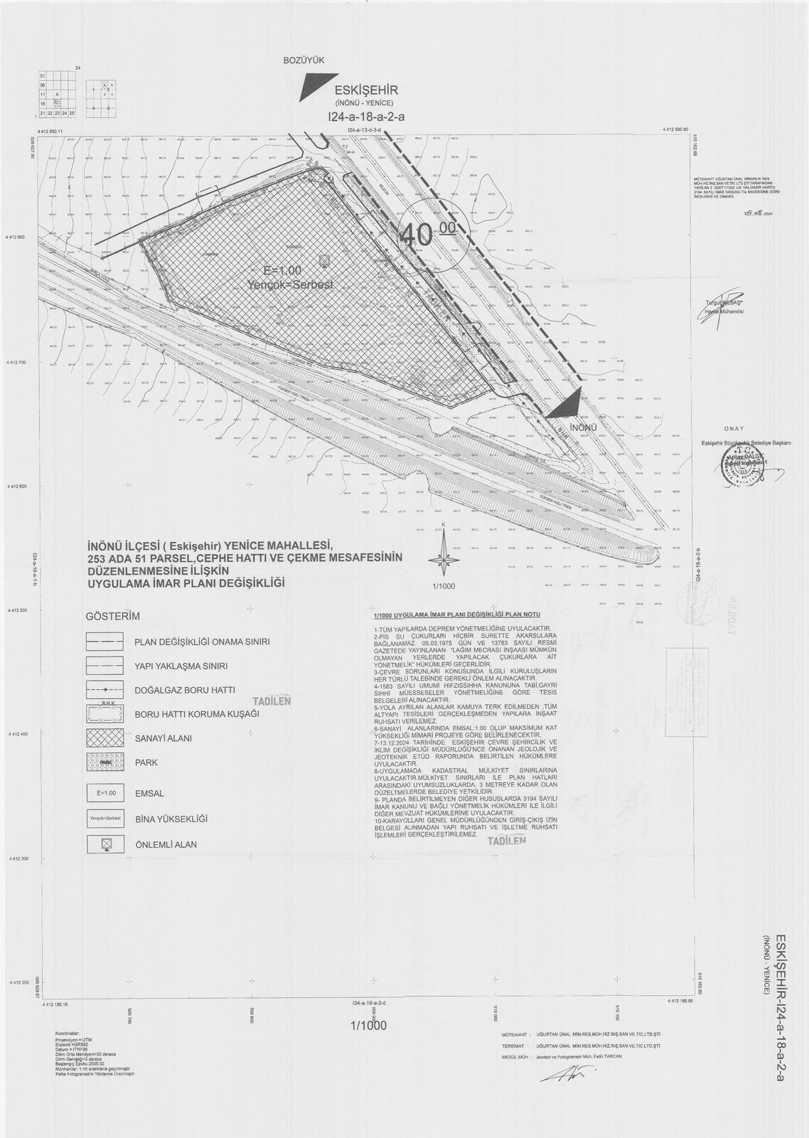 kayıtlı taşınmazları kapsayan 1/1000 ölçekli Uygulama İmar Planı teklifi